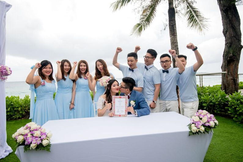 An officer from the local district office will come to the hotel on your wedding day for the registering process. They will present you with your marriage certificate. Once you have signed the certificate, you are officially recognized under Thai law as husband and wife.