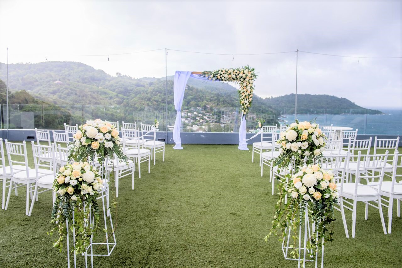 An idyllic rooftop wedding with stunning views overlooking the ocean and lush jungles. This package is offered exclusively at The Sea Galleri with the goal to make this an unforgettable event for bride and groom.